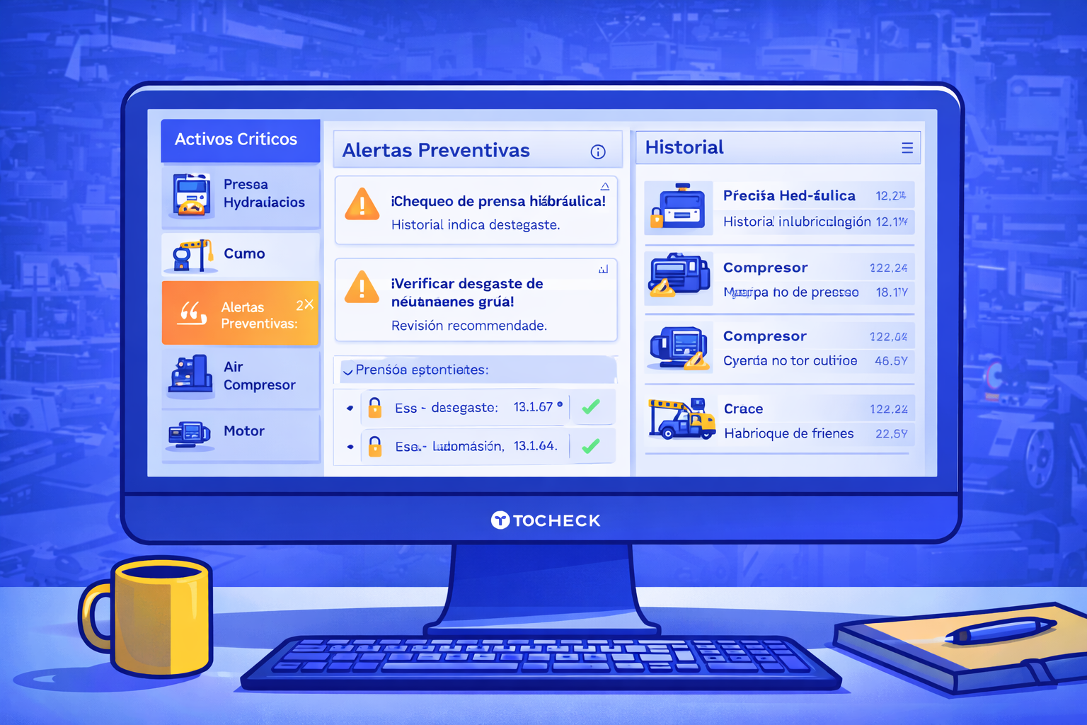 Tocheck sincroniza información entre áreas clave, Operaciones, Mantenimiento, Calidad, Prevención, RRHH y Comercial, garantizando que cada equipo reciba lo necesario para actuar con claridad y consistencia.Un sistema que permite que la operación avance como un todo.